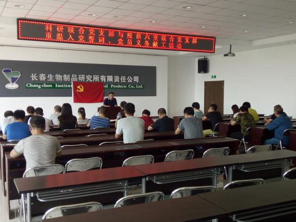 为纪念中国共产党成立96周年,教育党员不忘初衷、继续前进,在长春公司改革发展中多做贡献,2017年7月11日下午,长春公司科研联合党支部与疫苗六室联合党支部开展了“重温入党誓词、党员义务献工”活动,科研联合党支部与疫苗六室联合党支部党员、积极分子参加了活动。