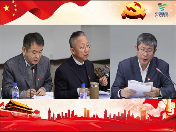 会议共六项内容,首先党委副书记、纪委书记、副总经理于晓达对国药集团党委《关于再学习再领会习近平总书记全国国有企业党建工作会议重要讲话精神的通知》文件精神、国药集团党委书记、董事长郭建新在国药集团党委中心组学习扩大会暨再学习再领会习近平总书记全国国有企业党建工作会议重要讲话精神座谈会上的讲话精神进行传达;其次邹勇书记传达郭建新书记在国药集团2018年党建工作会议上的讲话精神;再次财务总监王祥臣传达中国生物第二次党代会党委工作报告精神;最后于晓达副书记对中国生物第二次党代会纪委工作报告精神、国药集团纪委《关于贯彻落实习近平总书记重要指示精神坚决整治领导干部利用名贵特产类特殊资源谋取私利问题有关事项的通知》文件精神进行传达。