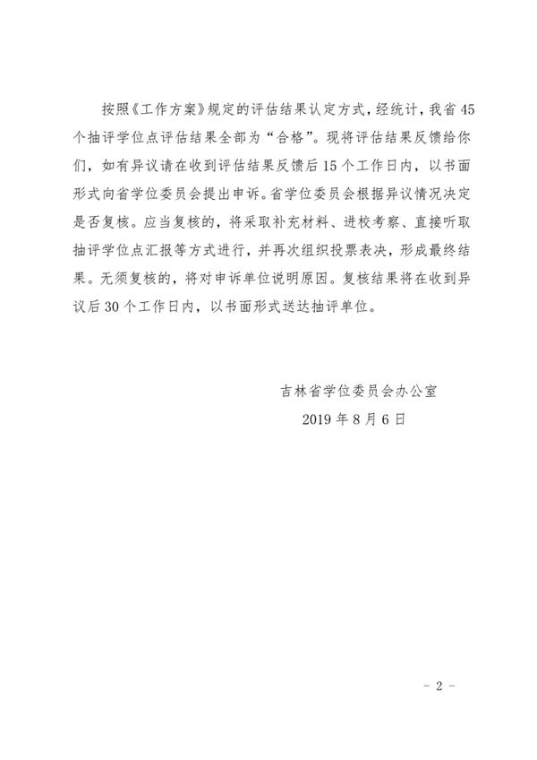 按照《工作方案》规定的评估结果认定方式,经统计,长春公司被抽评学位点“病原生物学”评估结果为“合格”。