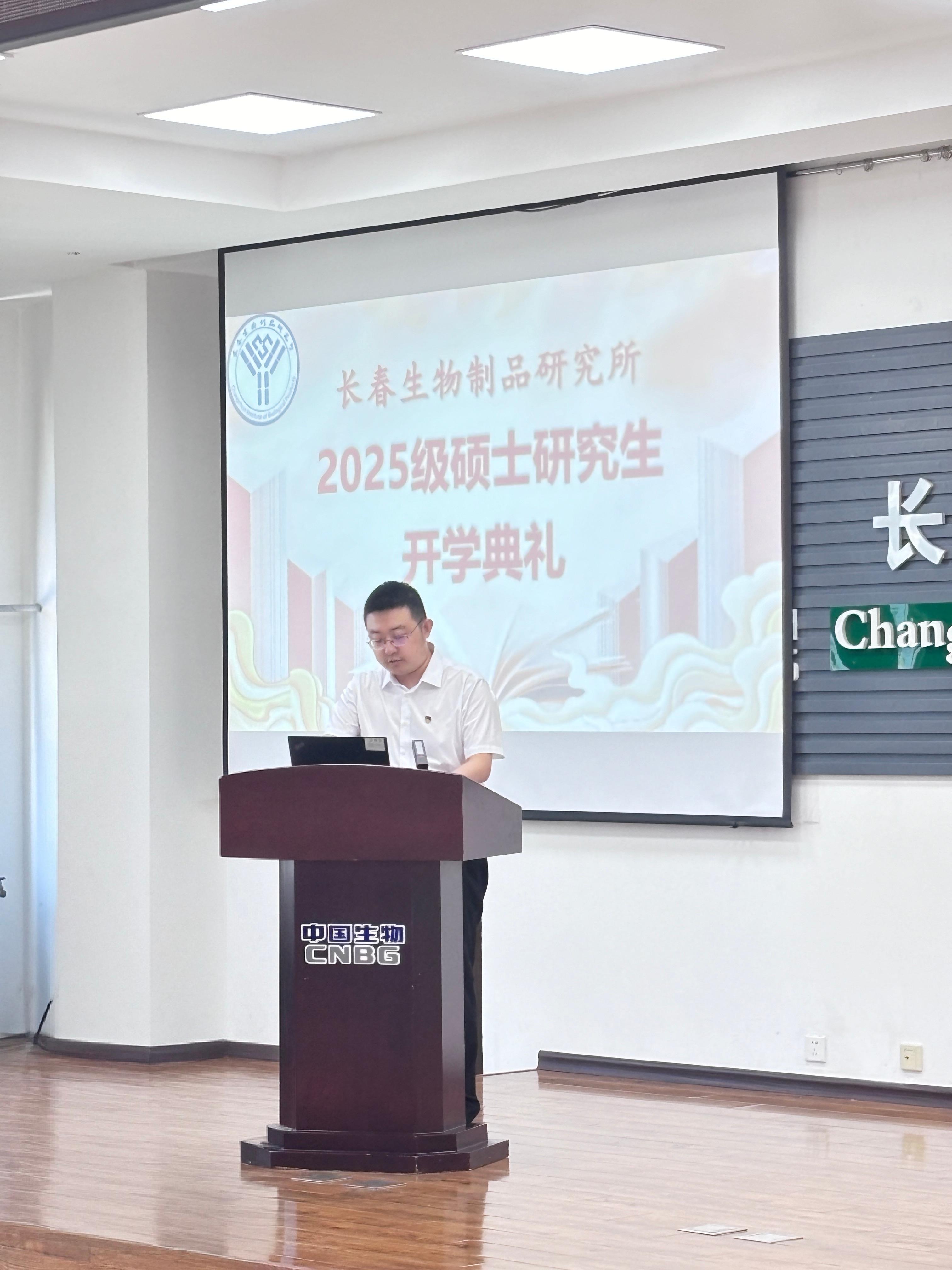 新生勾禹雷同学代表2025级新生庄严表态:“我们将以严谨的态度对待科研,以谦逊的姿态虚心求教,以坚韧的意志攻克难关,在长春生物制品研究所的平台上,努力成长为有担当、有能力的科研人!践行“关爱生命、呵护健康”的誓言!