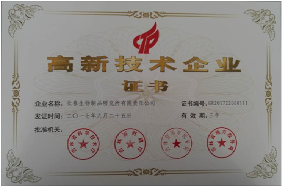 长春公司于近日通过高新技术企业认定,收到由吉林省科学技术厅、吉林省财政厅、吉林省国家税务局、吉林省地方税务局联合颁发的《高新技术企业证书》,证书编号为GR201722000111,认定有效期为三年。