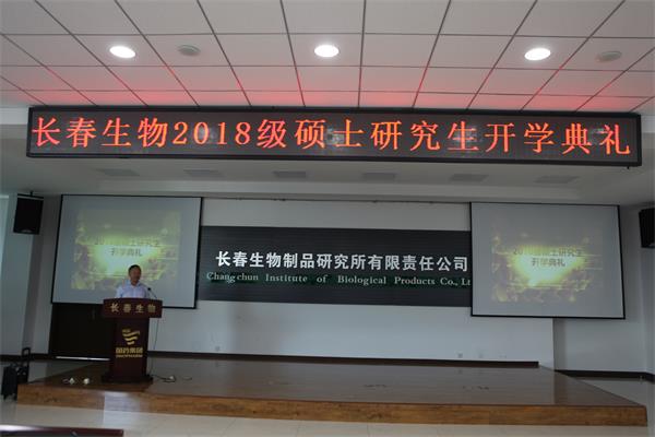 9月10日,恰逢教师节,长春生物制品研究所2018级新生开学典礼在开发区多功能报告厅举行。公司领导班子成员、学位评定委员会委员、研究生导师、全体在校研究生参加了典礼。典礼由科研开发部经理李利主持。