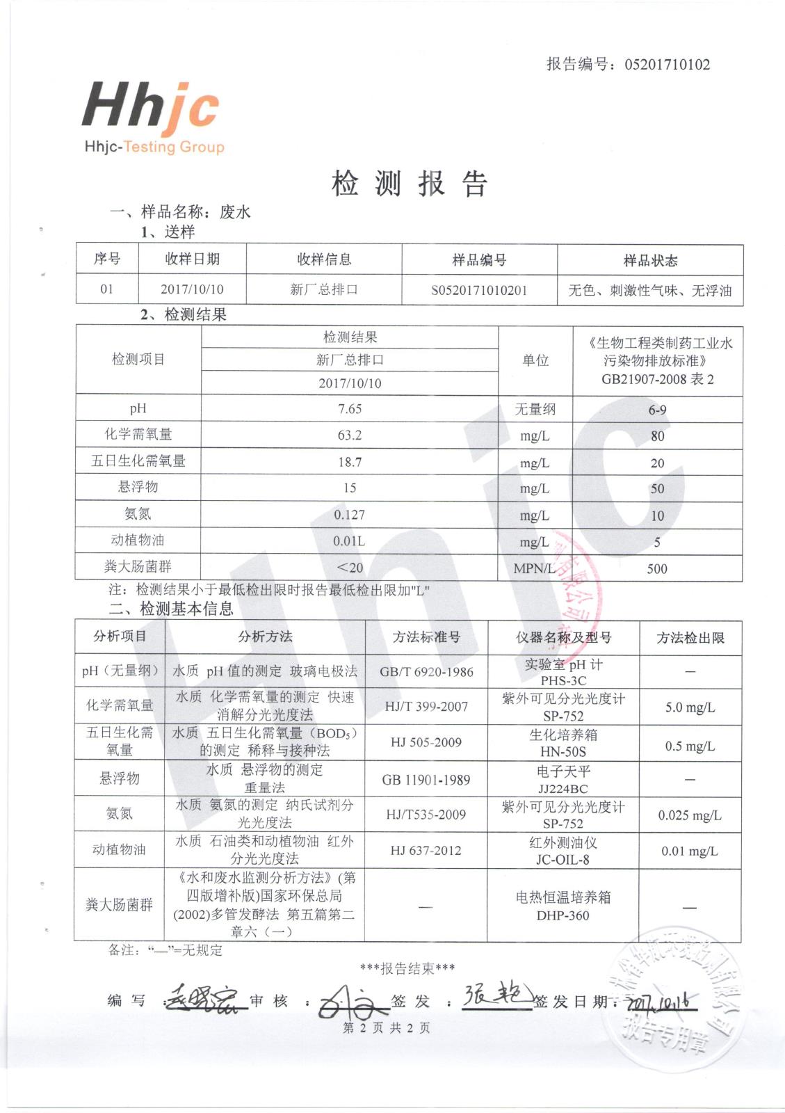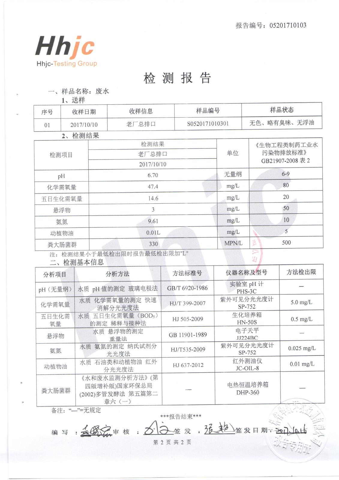 2017年下半年水质检测