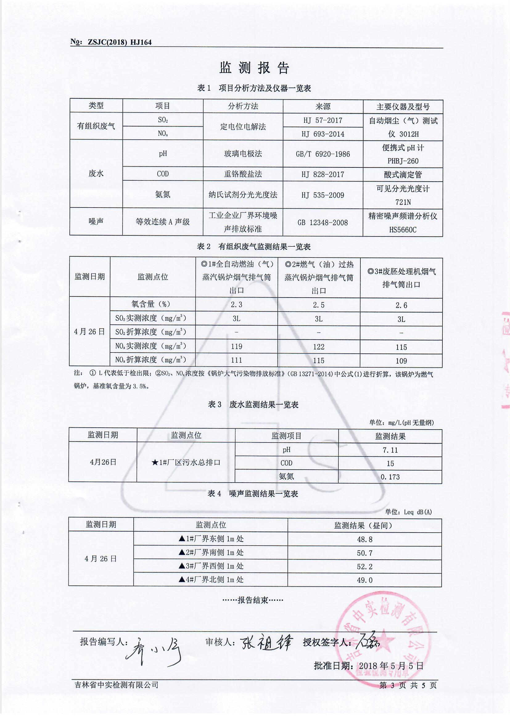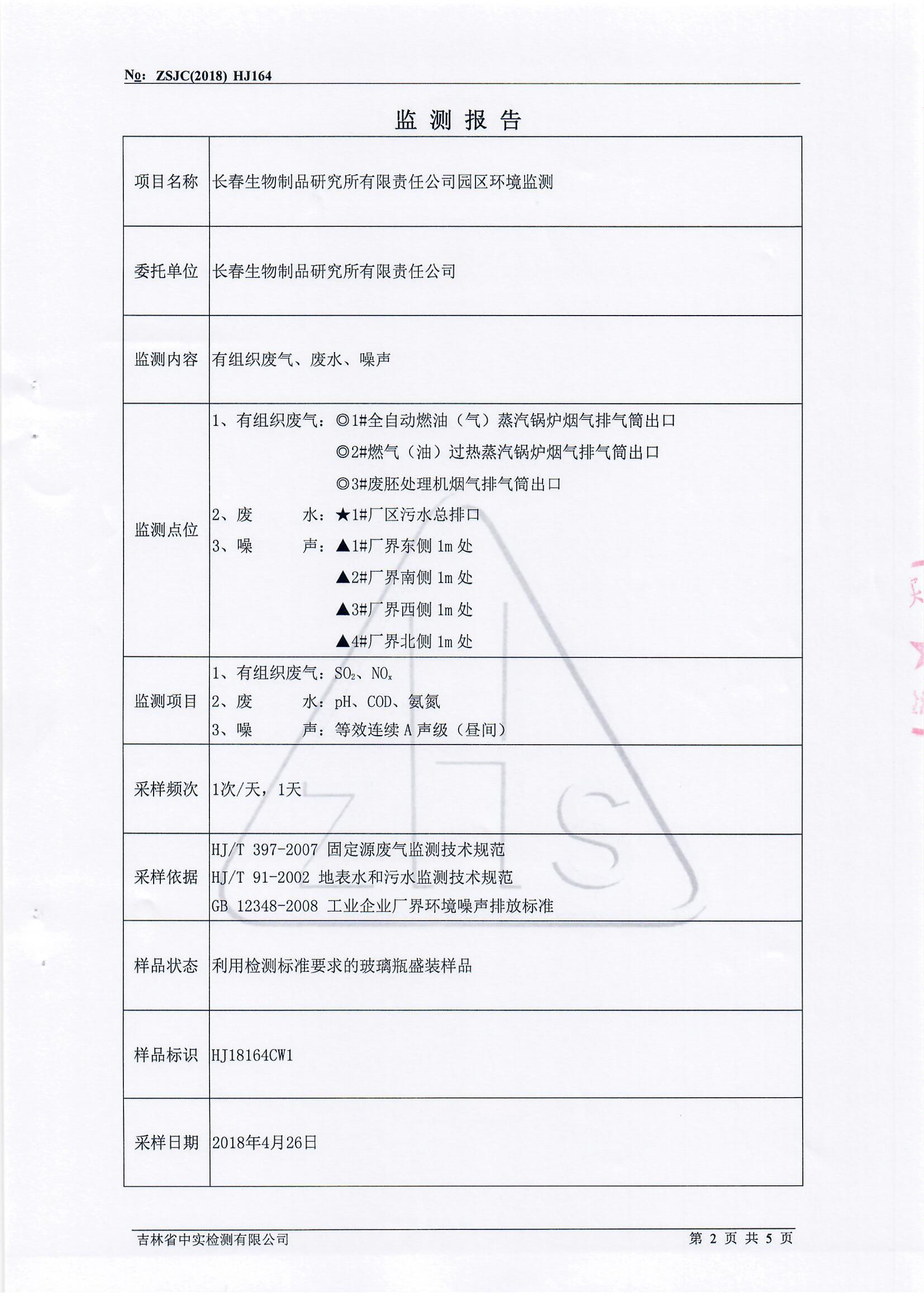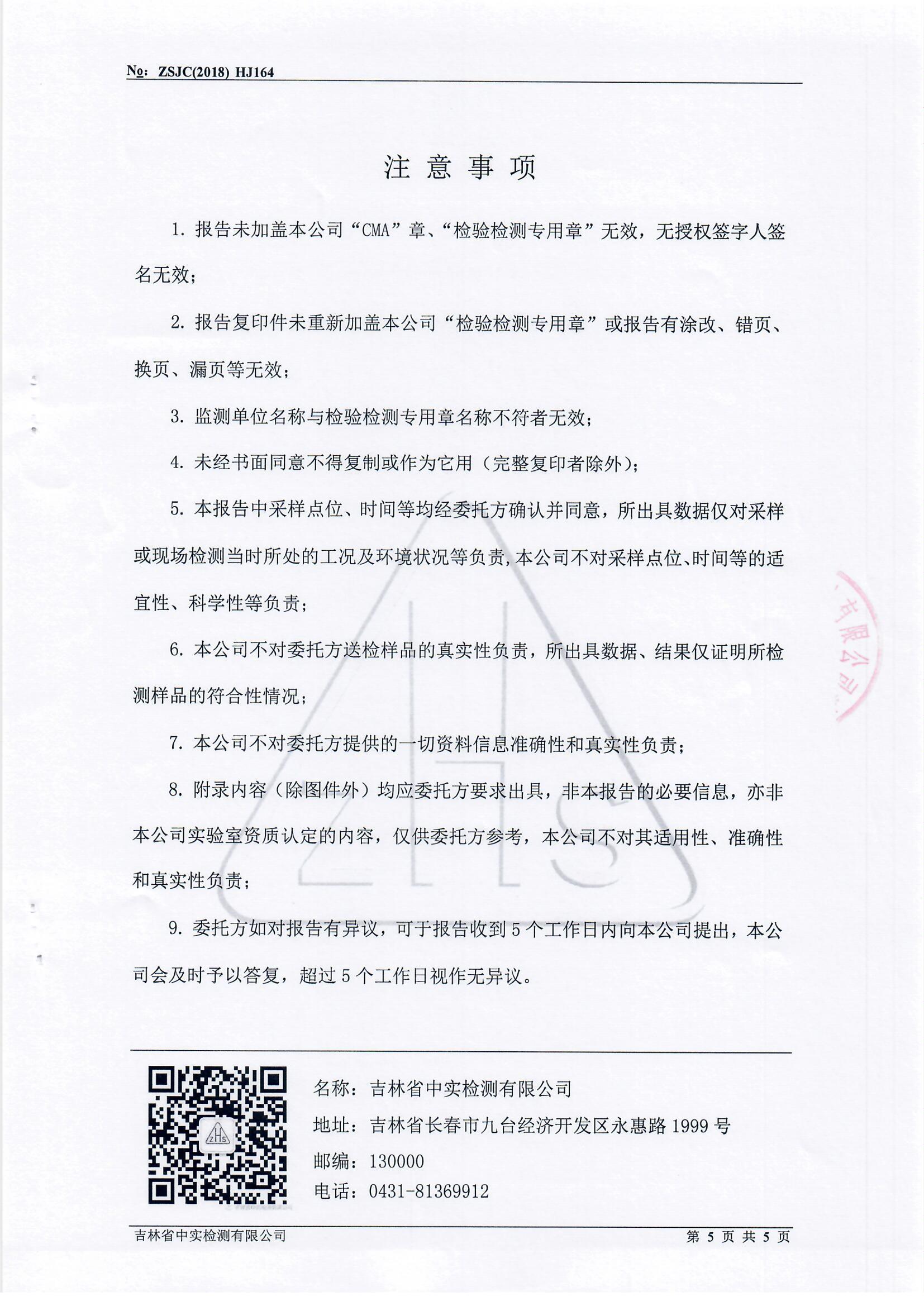 长春公司园区环境监测报告及相关资质(2018年上半年)